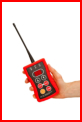 Robuster Funk-Handsender mit großen taktilen Tasten und spritzwassergeschütztem